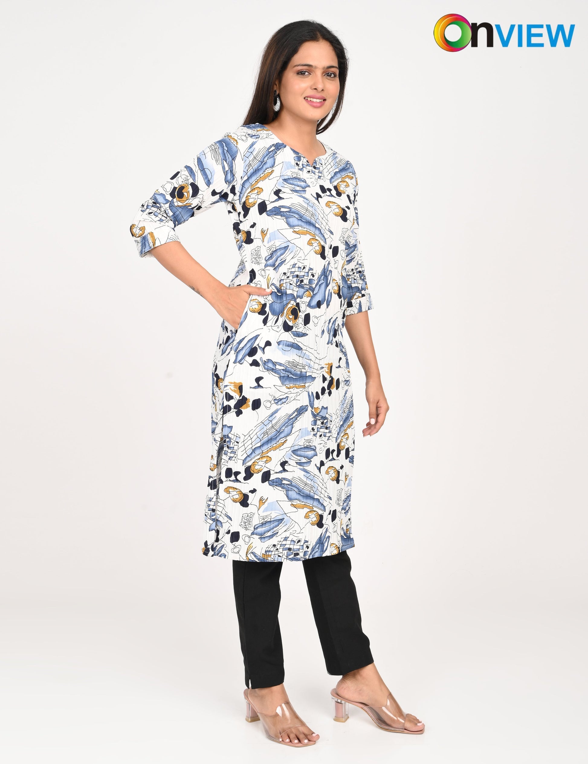"Designed for modern women, the Onview POPCORN DIGITAL PRINT offers timeless elegance and reliable comfort."