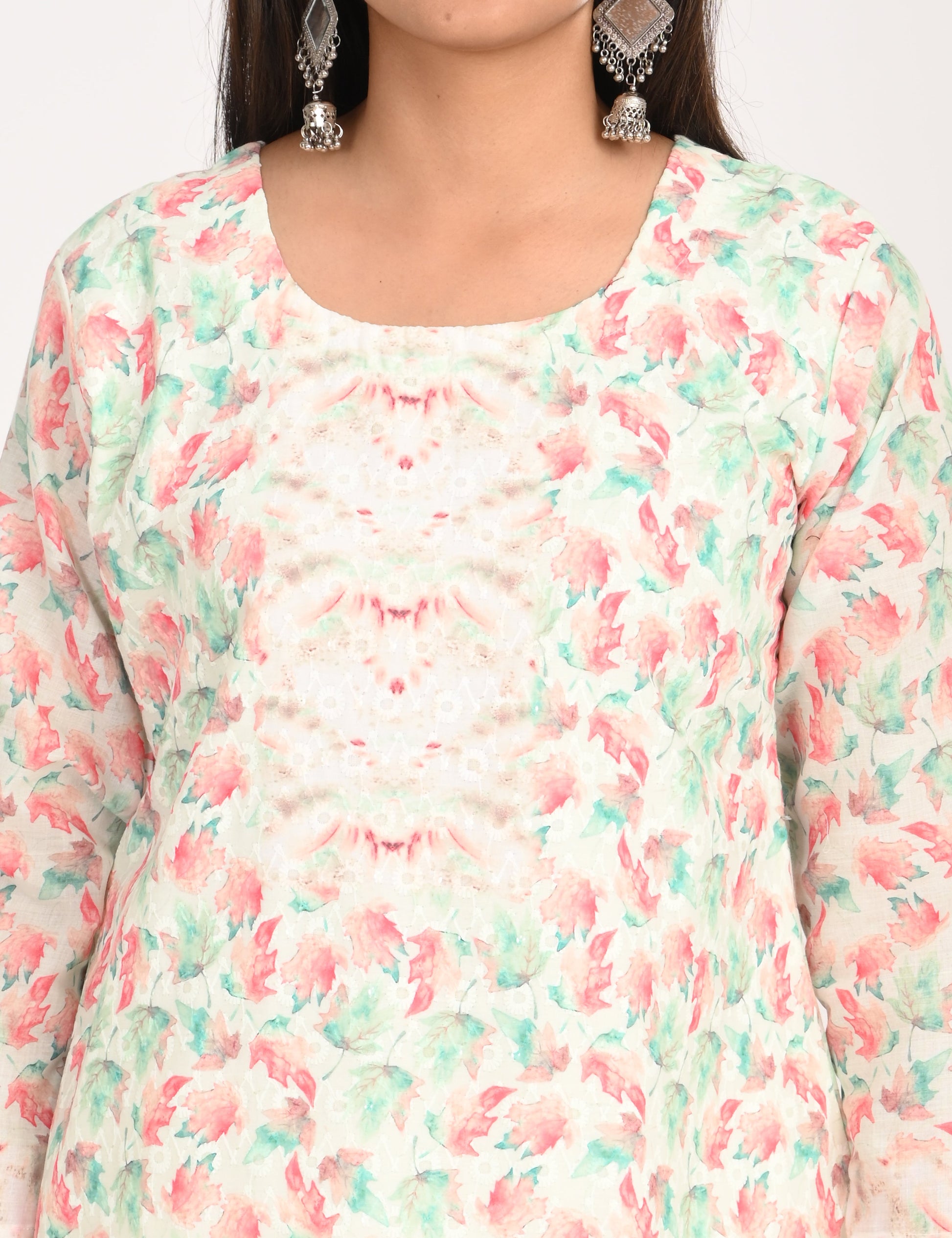 The ONVIEW COTTON CHIKANKARI WORK WITH DIGITAL PRINT is a sophisticated blend of luxurious fabric and delicate craftsmanship, designed to elevate your style effortlessly. Made from premium-quality silk, this kurti boasts a rich texture and an elegant sheen that exudes opulence, making it a perfect choice for special occasions or everyday elegance.
