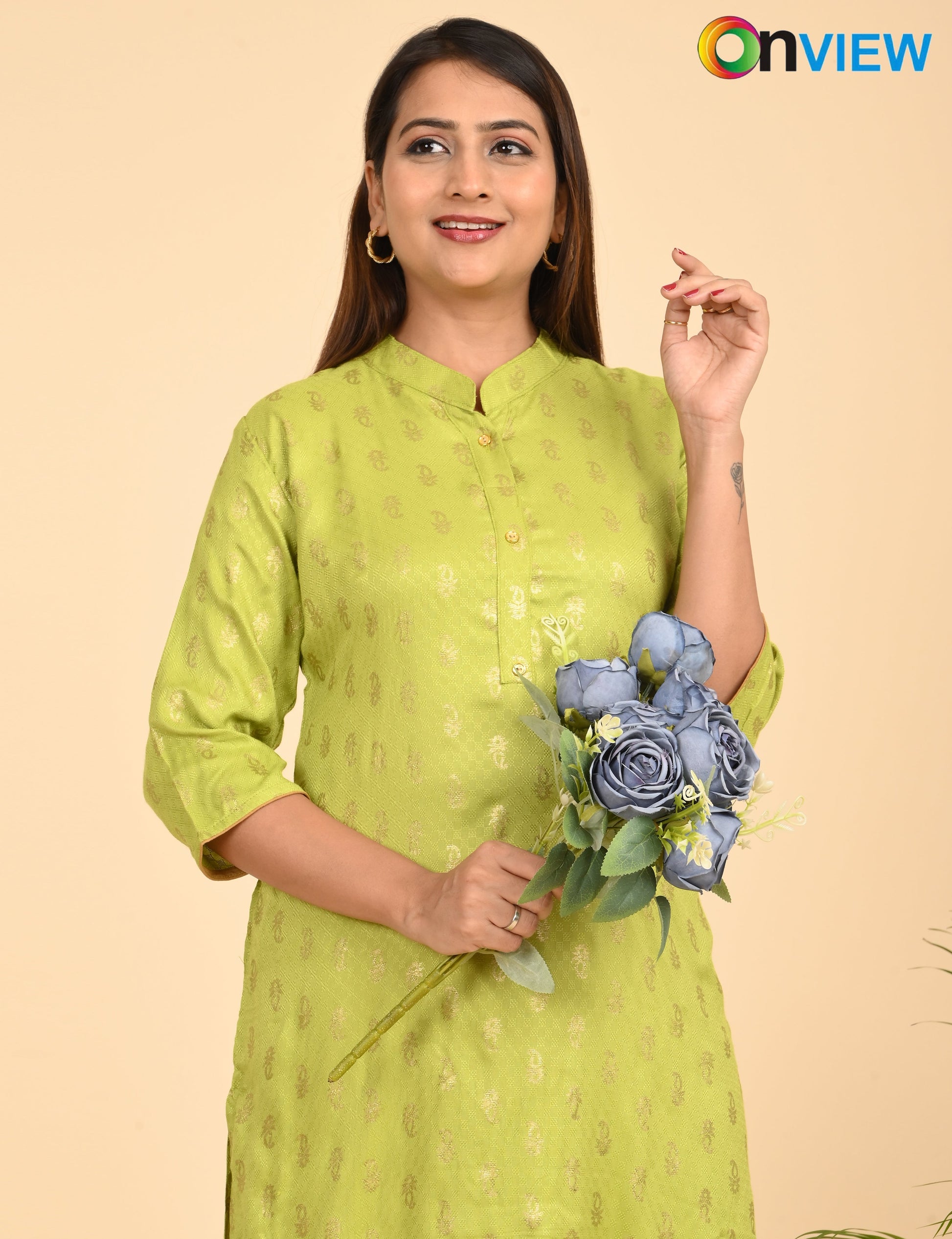 "Designed for modern women, the ONVIEW DOBBY FOIL PRINT offers timeless elegance and reliable comfort."